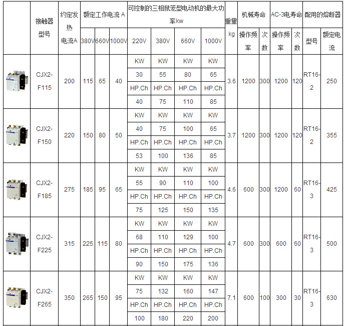 CJX2F(LC1-F)系列交流接觸器(以下簡(jiǎn)稱接觸器)適用于交流50或60赫茲,電壓至1000伏,電流至780安以下的電路中,供遠(yuǎn)距離接通與分?jǐn)嚯娐芳邦l繁起動(dòng)、控制交流電動(dòng)機(jī)。接觸器還可與輔助頭組,空氣延時(shí)頭,機(jī)械聯(lián)鎖機(jī)構(gòu)等附件,組成延時(shí)接觸器、機(jī)械聯(lián)鎖接觸器、星三角起動(dòng)器。并且可以和熱繼電器組成磁力起動(dòng)器。